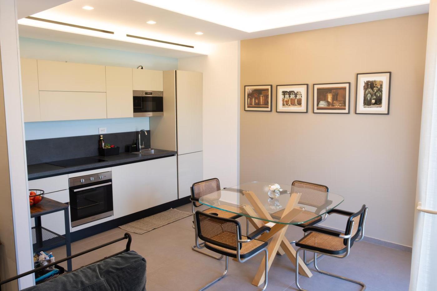 One-Bedroom Apartment. Boasting a private entrance, this air-conditioned apartment features 1 living room, 1 separate bedroom and 1 bathroom with a shower and a bidet. In the kitchen, guests will find a stovetop, a refrigerator, a dishwasher and kitchenware. The apartment has tiled floors, a seating area with a flat-screen TV, a washing machine, a coffee machine as well as garden views. The unit has 2 beds.